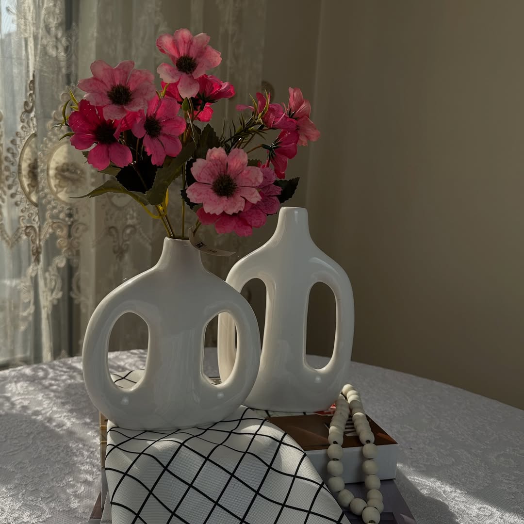 گلدان سرامیکی دکوراتیو سفید مدل دونات دفرمه (در دو سایز) کیفیت عالی